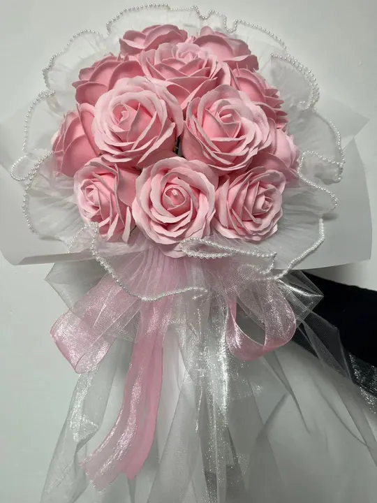 ※プレゼントに最適なソープフラワーの花束です。ほのかに石鹸の香りがする、石鹸素材から作られた造花なので、生花に比べて、長く鑑賞が楽しめます。 ※ソープフラワーとは花びら1枚1枚が石けんでできているお花です。 お花の大きさは生花と変わらない大きさでとっても華やかな上に枯れないので、 大切な思い出を美しいまま長く楽しむことができます。 ※ご注意:ソープフラワーは主に観賞用のみで、入浴剤としてのご使用はできませんので、ご注意ください。 ※金額が記載された書類(納品書・領収書等)は同封しておりません。 ※香りは全て同じではありません。香りが強い場合や弱い場合もあり、時間と共に香りは薄くなる場合がございます。 ※ハンドメイドで一つ一つお作りしてますので、同じものはございません。 ※包装紙は梱包や発送途中にシワや折れ目等が生じてしまう場合がございますが、ご理解いただいたうえ、ご注文をお願いいたします。 ※様々な用途に対応した万能ギフト 誕生日プレゼント、記念日、お見舞い、快気祝い、内祝い、出産祝い、引っ越し祝い、開店祝い、結婚祝いなど、人生の節目に贈るギフトとして多くの方に選ばれています。 また、仏花・供花・お供え用としても使用されるなど、幅広いニーズに応えるアイテムです。 ※ギフトとして: 大切な人へ贈る際にも、ゴージャスな印象を与えることができます。長期間枯れることなく飾って楽しめるため、プレゼントした時の思い出を残したい場合にもぴったりです。 ※母の日や卒業式などの特別な日にもぴったりです。枯れることのない造花なので、長期間保存も可能。お部屋のインテリアとしてもお楽しみいただけます。品質にも自信を持っており、品質保証付きです。大切な人への心のこもった贈り物として、是非ご検討ください。 ※直射日光や高温多湿の場所は避け、風通しの良い場所で保管してください。 豪華プラス・長持ちする枯れない花(Soap flowers)//ソープフラワーとは本物の花を一切使用せずに、香りのよい石鹸素材のみで作られたお花というものです。安いですが、生き生きしており、本物とそっくりですが生花とは違って枯れることがありません。 花粉症の方にも安心な魔法の花(Artificial flowers)//生花と違い、淡い石鹸の匂いがして、細菌の繁殖がなく、この石鹸花は花粉がありませんのですから、お花が好きの花粉アレルギーの方へもいい品物です。アレルギーが心配な方や病室などでも安心して飾ることができます。 手間がかからなく・持ち運びしやすい花束(Gift flowes)//水やりや肥料をあたえるお手入れが不要、ほこりが付いたら軽くティッシュでふき取る程度の手入れをするだけで大丈夫です。