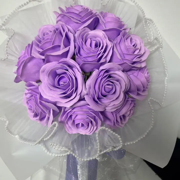 大人気枯れないお花 花束 大人気ソープフラワー 花束 母の日造花 花 敬老の日フラワーギフト バラ 結婚式誕生日卒業式成人式プレゼント パープル