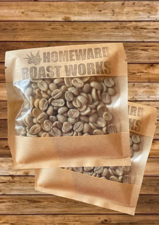 こちらはコーヒーの焙煎前の豆になります。 キャンプや、家庭での手焙煎に最適。荷物にもならないコンパクトサイズ。 (コンロ、網などは付きません) 50g焙煎でお好みの濃さ、抽出量によりますが、2~3杯ほどお楽しみいただけます。
