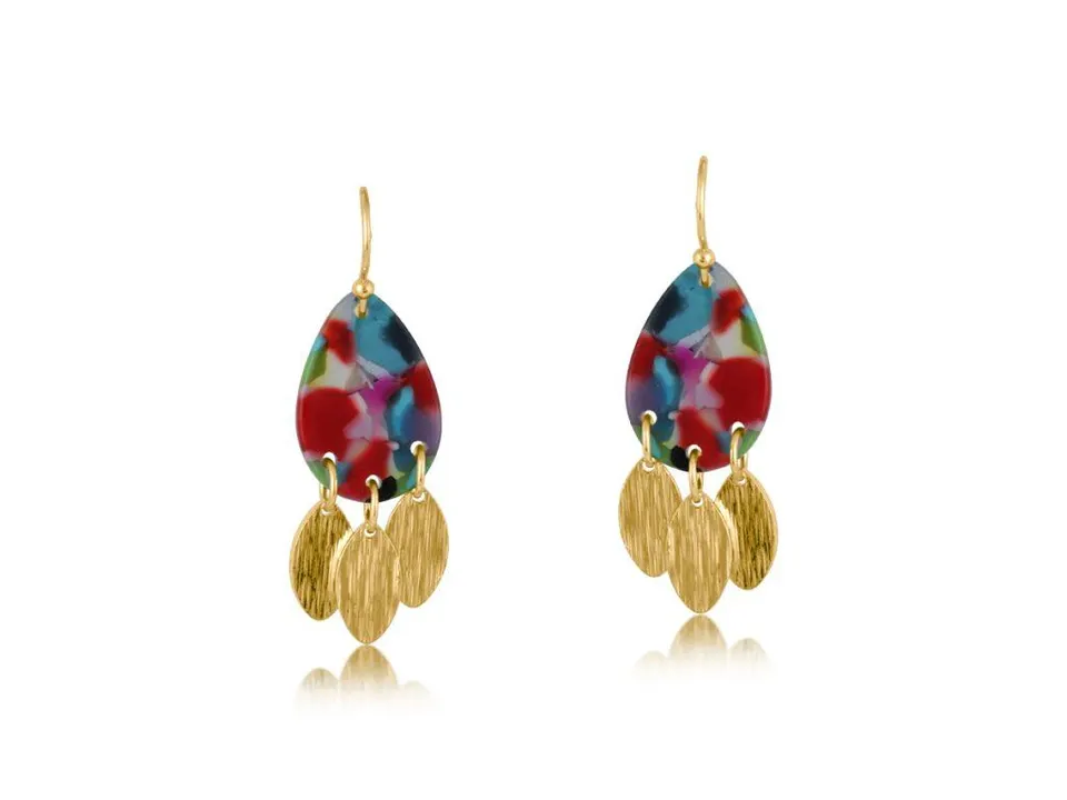 2966 Sophia メタル&レジン ダングルピアス RED/ORANGE/LILAC