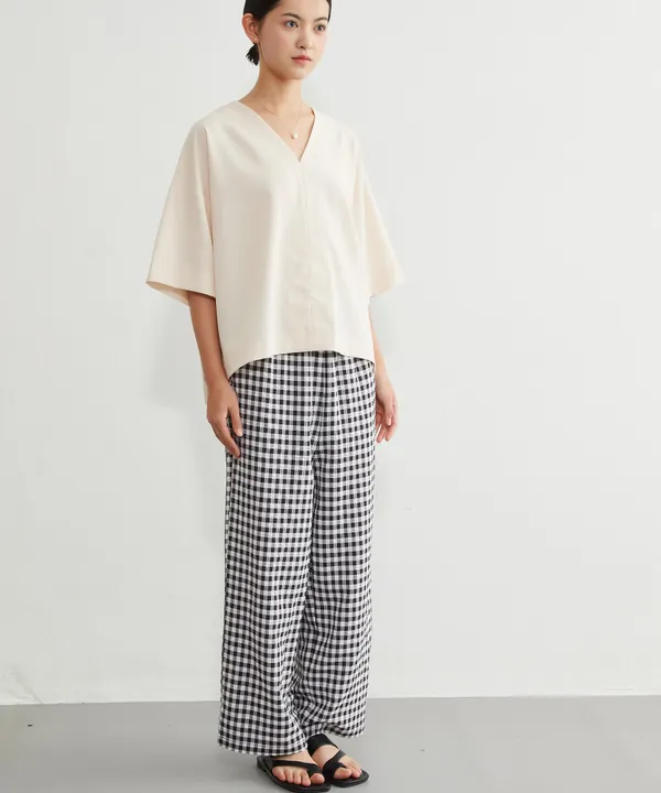 KNGP632・ギンガムチェックリラックスストレートパンツウエストゴム仕様 BLACK/L