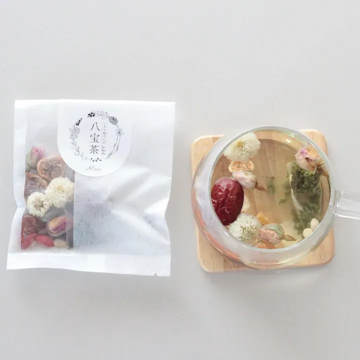 ••••••••••••••••••••••••••••••••••••••• 1包カップ一杯用です。 お湯を注ぎ足して2-3煎いただけます。 ••••••••••••••••••••••••••••••••••••••• 八宝茶の飲み方や詳しい内容は下記のURLからご覧ください。 https://ikumoya.com/babaocha https://ikumoya.com/drink