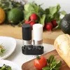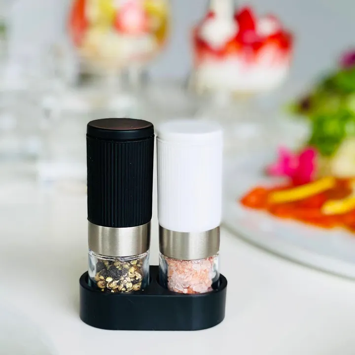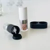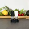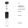 コンパクトサイズの ペッパーミル ソルトミル スタンド付。手のひらにフィットする小型サイズで狭いスペースでも邪魔にならず、シンプルデザインでどんなインテリアにマッチします。キャップ付なので中身がこぼれ出ることがなく、そのままポケットやポーチに入れて、オフィス・旅行・キャンプ・ピクニックなど、気軽に持ち運ぶこともできるサイズ感が魅力。 上部のキャップを外し本体をグラインドすることで粒胡椒・海塩を挽くことができ、いつでも挽きたての香り高い塩胡椒を楽しむことができます。 本体ボディは透明なガラス製で中身や残量がよく見えるようになっています。 調整ツマミによる粗さ調節機能付き。お好みの粗さを選ぶことができて便利です。 刃の素材にはセラミックを採用しているため、耐久性、耐食性に優れています。 すべてFDA国際食品検査基準をクリアした素材を採用しています。プラスチック素材はBPAフリー。 塩胡椒だけでなく、山椒、胡麻などその他のスパイスも挽くことができますのでお試しください。