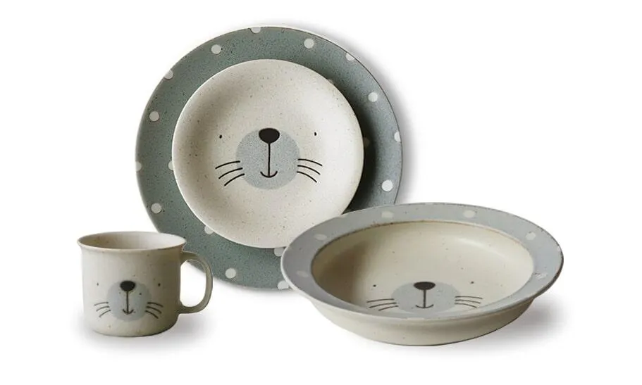 おうちごはんをたのしくMOGU MOGU!それぞれ多様に使えるアイテムを揃えた、スタートに最適なセットです テーブルセッティングにはこれだけ揃えば間違いありません ライオンにハリネズミ、ゴマアザラシが集合 重ねてもそれぞれ使ってもかわいい それでは手を合わせて「いただきま〜す!」
