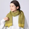 もこもこと立体感のあるブークレの透かし編み マフラー MT(マスタード)