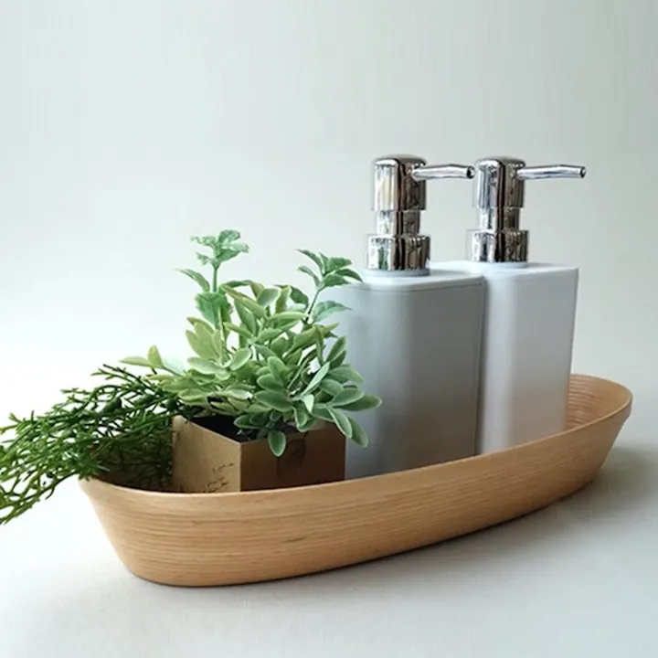 オーバル形のシンプルなバスケット。 ワイドなLサイズは、様々なアメニティをスッキリ収納してくれます。 サイズ(mm):325×140×H50 カラー:ナチュラル ライトブラウン ダークブラウン 素材:天然木(ブナ材、突板貼りMDF) ウレタン塗装仕上げ 原産国:日本 ※ お手入れは、水をしぼった柔らかい布でお拭きください。破損の原因となりますので水に浸さないようご注意ください。 ※ 限りある資源を大切にしロスを減らすために、材料の選別をせずに製作しています。杢目や節、色みなど風合いが異なる天然木ならではの表情をお楽しみください。 ※ 手作業で製作しているため表記サイズより若干の誤差が生じる場合があります。