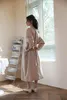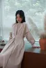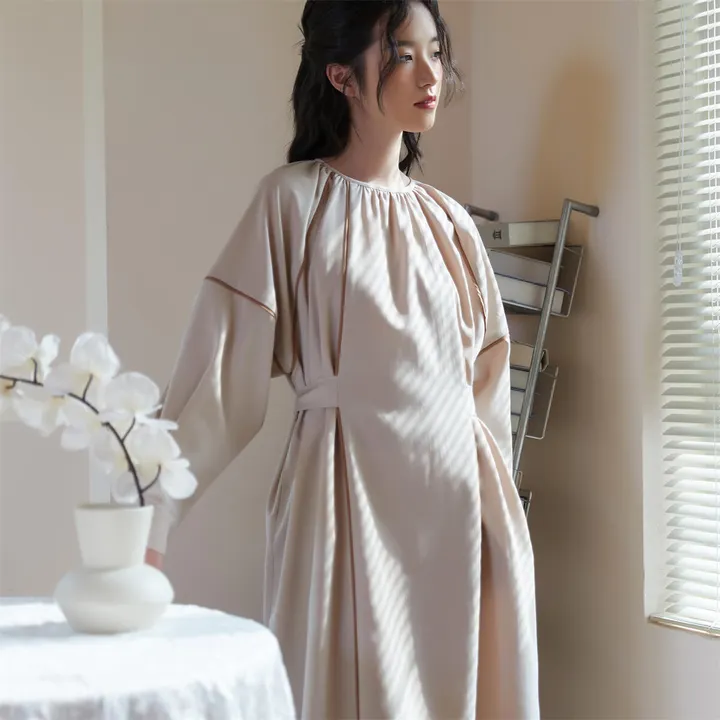 KNSO339パイピングディテールベルト付き長袖ギャザーワンピース BEIGE/FREE