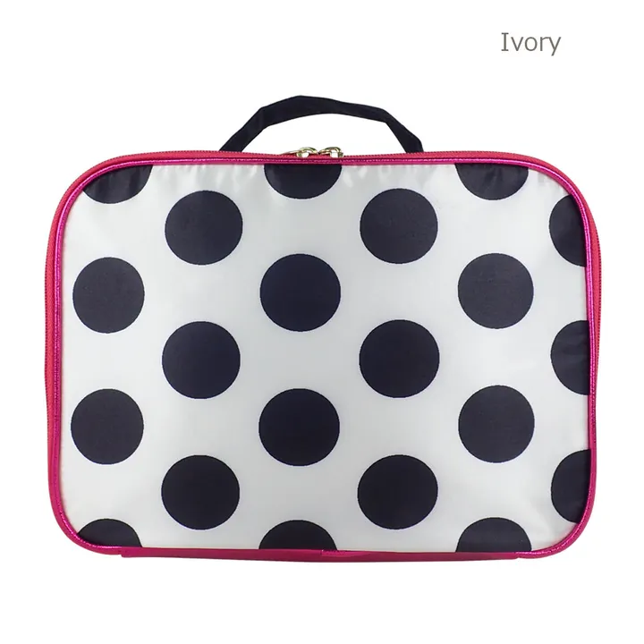 DOTが可愛いポーチ◎ 下着ケースとしてもウエアケースとしてもしっかり収納できる優れもの! 内側には沢山ポーチもついて細かいものを分けて収納できるよ。