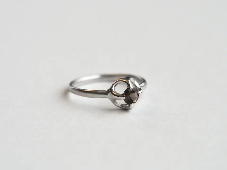 ・コンセプト 「心の内に秘めた光を引き出し、身に纏う人そのものを輝かせたい。」人は誰しも、心にきらりと輝く光を持っています。その光は、人それぞれに形が異なるからこそ美しく、素晴らしい。Rinnは、心に宿る光に寄り添うように、身につける人そのものを輝かせるジュエリーを提供しております。 「毎日身につけても壊れにくく、時を重ねるとともに肌に馴染んでいくようなジュエリーを」 Rinnは身につける人の肌と生活に馴染むジュエリーを提供しております。 ・デザイン 「他になく、永く愛されるデザインを。」 ジュエリーのデザインは、日常に溶け込んだささやかな美しさから生まれます。 例えば揺らめく布の柔らかさに触れた時や、朝陽が昇る瞬間に霞んでいたものが透き通って見えた時、感じ取った自然の美しさがジュエリーの形になっていきます。 そこへクラシカルな要素を取り入れることで、"Rinnにしかないデザイン"を意識いたしました。 お客様の生活に寄り添い続けるために、永く愛され続けるデザインにこだわりました。 そこには「親から子へと、時代を超えて受け継がれていって欲しい」という想いも込めております。どんな人にもどんな装いにも、しっくりと馴染み続けていくよう願いを込めてジュエリーを製作しております。 ・アイテム 表面の艶のない滑らかなテクスチャーが特徴のリセシリーズです。 トップのスモーキークオーツが浮いているように見えるセッティングで個性的なデザインになっております。