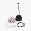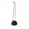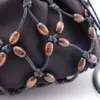 ウッドビーズを編み込んだ マクラメショルダーバッグ(2色) BK