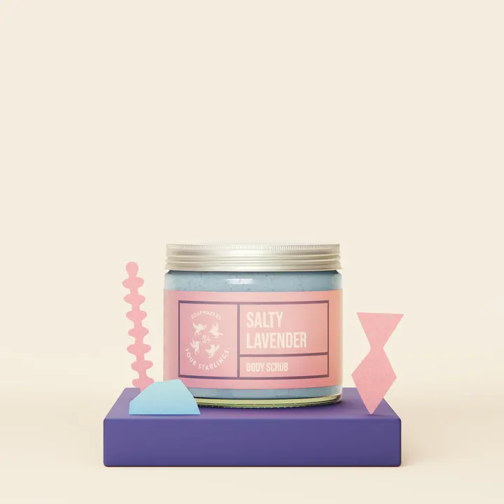 ソルティ ラベンダー スクラブは、海塩とヒマラヤ岩塩、2種類の塩を使ったボディスクラブです。 塩の粒が古い角質をしっかりと取り除き、つるんとなめらかな肌へと導きます。 ココナッツオイルやシアバター、スイートアーモンドオイルが塩のスクラブ効果をやさしくサポートし、うるおいと栄養を与えながら、肌表面に保護膜を作ります。スクラブ後の肌はしっとり、柔らかく。 フランス産のブルークレイが使われており、ミネラル豊富なブルークレイが肌を整えながら、自然なハリとツヤを与えます。 ラベンダーとレモンの天然エッセンシャルオイルが香る、フレッシュで心地よい香りに包まれる時間をお楽しみください。 注意点としては、塩の粒がしっかりしているため、カミソリ使用直後のデリケートな肌や敏感肌の方は肌の様子を見ながらお使いください。