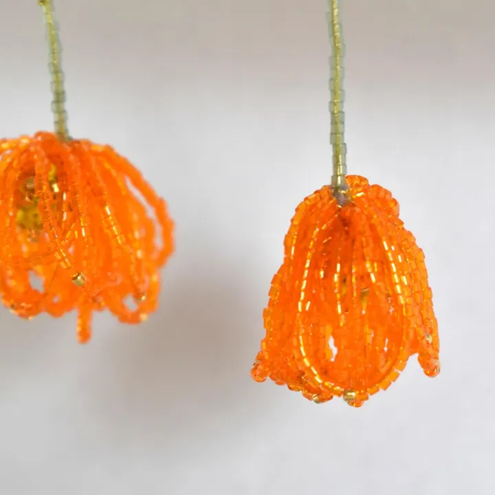 毎年いつものその場所に 群生しては消えて そしてまた春になるとかえってくる ナガミノヒナゲシ そのくらい 生命力の強い 草花である 美しい 鮮やかな橙色(だいだいいろ)の花弁を ひらひらと見せびらかすように 春の風を泳いでいる material K14GF ゴールドフィルド(ピアス金具)、SILVER925 金メッキ(イヤリング金具)、ガラスビーズ、真鍮、チタン、シリコン *ゴールドビーズは本金メッキ加工を施したものを使用しております *取り付ける金具によって、使用している金属が異なります size 約30x70mm weight 約3.9-4.9g *取り付ける金具によって、重さが異なります *CACICOの商品は全て1点1点制作しているため、個体差があり、商品写真と差がある場合がございます。ご了承の上、ご購入ください。 *金属アレルギーの方はご使用をお控えください *受注生産のため、ご注文確定後1週間〜10日以内に商品を発送いたします