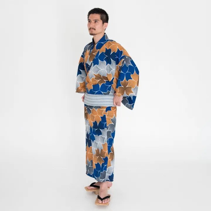 アフリカ布・パーニュを仕立てたメンズ用の浴衣。 ※帯・下駄は付属しておりません。 ※色柄の出方は一点ずつ若干異なります。