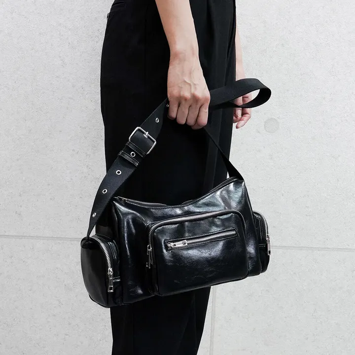 ✓充実のポケット設計 左右に1つずつ、そしてフロントにはジップ付きポケットを搭載した実用的な収納構造。 フロントポケットはスマートフォンがぴったり入るサイズ感で、サッと取り出したいときにも便利です。 ✓疲れにくさを考慮した太めショルダーベルト 幅広の太めショルダー紐を採用しているため、荷物が多くても肩への負担が軽減され、長時間の使用も快適。 ストラップには8段階のホール調節があり、ショルダー・斜め掛けと持ち方のアレンジが可能です。 ✓素材とカラーバリエーションで楽しめるデザイン性 ブラックとグリーンは上品な合成皮革 ヒョウ柄は軽やかなポリエステル素材 ✓性別を問わないユニセックスデザイン さりげないディテールで個性をプラス。 性別や年代を問わず使えるユニセックス仕様で、パートナーとシェアしたり、プレゼントにも最適です。