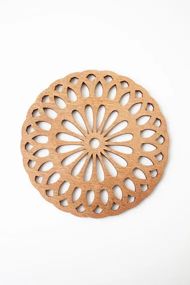 リトアニアで製作しているコースターです。 焼け跡の残らない技法を使用し、レーザーで切り抜いたデザインです。