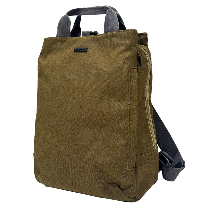 リュックにもなる2Wayトート! トートとしての使い勝手の良さはもちろん、背負った時や前に抱えた時の快適さも追求しました。 電車内で前に抱えた時などに、内ポケットやルーポケットから小物の出し入れが便利なつくり。 荷物の整理がしやすい二口タイプ。 すぐに取り出したいものは、前面のあおりポケットへ。 しっかりしまいたい荷物は、ファスナー開閉のメイン収納へ。 13インチPC、A4サイズを縦に収納可能で、ビジネスバッグとしても大活躍。 開口部に付けた調節可能なバックルがポイント! 短くすればシルエットを綺麗に保ち、長くすれば、バックルを閉じたまま前ポケットから出し入れができます。 小物の収納に便利な充実のポケット。 背中に接する面のルーポケットには、お財布などの貴重品を安心して入れておけます。 指を掛けて開閉しやすい丸リングのスライダーだから、背負ったままでも出し入れ可能。 外装には、張り出したポケットやパーツがなく、スッキリとしたデザイン。 また、トートバッグとして手持ちした時に、ショルダーベルトの端が垂れないつくり。 どんなファッションにも合わせやすく、季節を問わず大活躍です。 お出かけを心地よく。 まいにち使うほどに、“グッドデザイン”を実感できます。