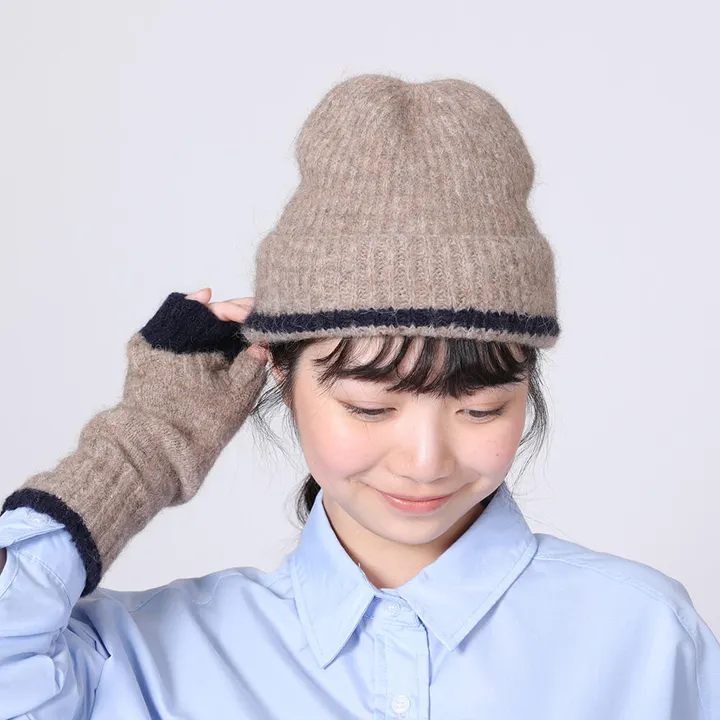 裾に入った配色ラインがポイントのニット帽は、コーディネイトによってラインを内側に隠して被って無地でも着用できるデザイン。 滑らかな手触りのアルパカ素材が上品な仕上がりで、ふわふわと柔らかく温かみのある優しい印象を与えてくれます。 アルパカがメイン素材なので軽量ながらも保温性に優れています。 アルパカには滑らかな手触りと美しい自然な光沢があります。繊維の中心が空洞になっており、あたたかい空気をため込むことができます。そのため、放湿性と保温性にすぐれてます。また非常に丈夫で、毛玉ができにくいのも特徴です。こちらの製品は合成繊維との混合糸を使用していますので、品質表示をご確認の上お手入れしてください。 この製品は、日焼け、汗や水に濡れた場合の摩擦により、他の物への色移りや変色する場合がありますのでご注意ください。素材の特性上、毛抜けや毛羽の乱れが生じる場合があります。型崩れする恐れがありますのでご家庭での洗濯はお避けください。