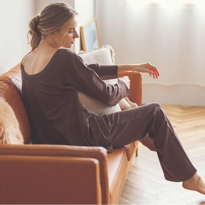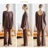 ルームウェア レディース 長袖 セットアップ パジャマ (上下セット)chelcy-s-8-9 L モカ