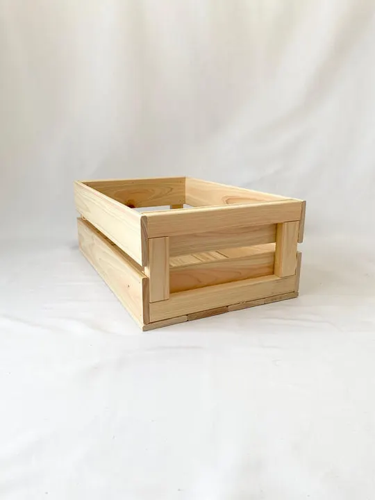 安心安全の国産ひのきを使用したウッドボックス〈小〉になります。 無塗装の天然ひのきを使用してます。ひのきのいい香りがします。 サイズ 外寸 約たて280×よこ450×たかさ165mm     内寸 約たて260×よこ392×たかさ155mm 持ち手があり持ちやすいです。野菜やおもちゃ、日用品などいれてお使いいただけます。使用する向きを変えることでインテリアにもなります。 ※重すぎると底が抜ける場合があります。 *1板と板の間に乾燥による収縮で隙間ができることがあります。 *2天然ひのき材使用のためヤニが出てくる場合があります。これは木本来の良さであり、木が健康な証拠です。雑菌の繁殖を抑え、防腐性を高めるものになります。ヤニが気になる場合は、お湯やアルコールでふき取って下さい。 *3天然素材のため反りや小ヒビが発生する場合があります。 *4カット時の小さなささくれが残ってる場合があります。ささくれが気になる場合は紙ヤスリでこするときれいになります。 *5無塗装のため変色します。(日に当たると変色が早いです。)