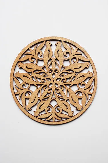 リトアニアで製作しているコースターです。 焼け跡の残らない技法を使用し、レーザーで切り抜いたデザインです。