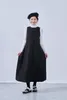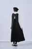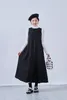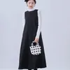 KNSO368-Aライン・リネンミックス・背中開きワンピース・ジャンスカ・ジャンパースカート BLACK/L