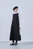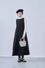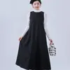 KNSO368-Aライン・リネンミックス・背中開きワンピース・ジャンスカ・ジャンパースカート BLACK/M