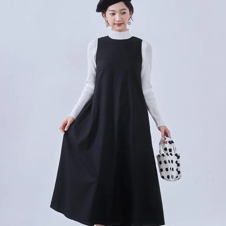 こちらのジャンパーワンピースは夏バージョンの物より首回りやアームホールを大きく設定して作ってありますので、INに薄手のニットやシャツをレイヤードできるようにゆとりを作りました。またインサイドの仕様にも新たな工夫改善を施しより綺麗な仕上がりとなりました。 程よい厚さのリネンコットンミックスの生地で、体のラインを拾いにくく安心してパッと被れるAラインワンピース。前身ごろはシンプルミニマルな印象で、ポイントは後ろにある大きなタックと背中見せのデザイン。シンプルの中にアクセントを加え、バックシルエットが可愛い抜け感のあるデザインにしました。 程よいフレアー感と背中の開きがコーディネート次第で大人っぽい印象にもなります。◎ポケットあり。 #AW#ワンピース#ジャンパースカート#リネン混#シンプル#定番#人気#Aライン#ミニマル#ナチュラル#ノースリーブ#タック#再入荷#秋#冬#レイヤード
