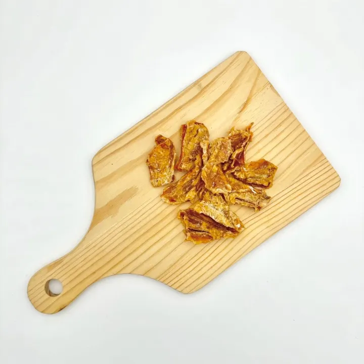 国産鶏軟骨を使用したヤゲン軟骨です。 鶏胸付近の軟骨で周りに少し胸肉がついており、カリッカリの食感です。 手羽先の先ジャーキーより少し硬いですが、手羽先が食べられる子、手羽先が好きな子はヤゲンも気に入ってくれる子がかなり多いです♡ 調理時、梱包時の二度検品作業を行なっております。
