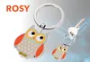 キーホルダー、フクロウ、鋳造金属、エナメル、クロームメッキ、光沢、マルチカラー