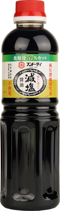 塩分57%カットでもおいしい減塩醤油 一般的な濃口醤油と比べ、食塩分57%カット!15ml当たりの食塩相当量はわずか1.1g。 味わい豊かでおいしい特級本醸造の減塩醤油です。