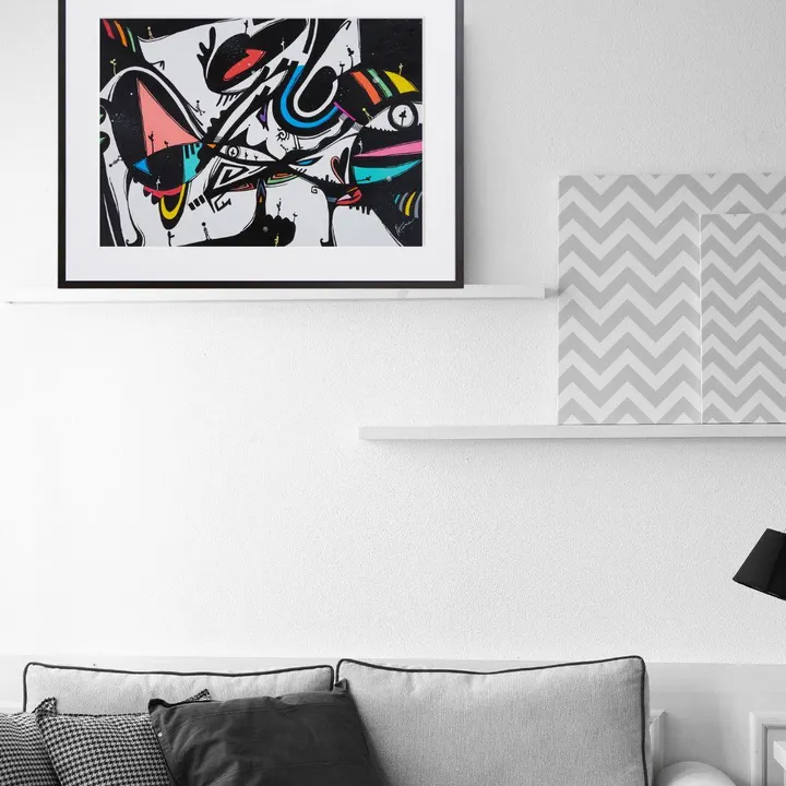 【現代アートポスター】小さな小人 物語 抽象画 模様 A3(M) フレームセット:黒 40.0×51.5cm