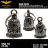 アメリカ製ガーディアンベル社製ガーディアンベルです。 MADE IN USA アメリカ製 交通安全 魔除け 御守り ガーディアンベル アメリカのライダーの間には、事故や、転倒の原因は「道路にひそむ悪魔」によるいたずらだという伝説があります。悪魔は走る者に悪戯やトラブルを運んできます。このベルは美しい音色で悪魔たちを追い払うと言われ愛されています。そんな悪魔のいたずらを防ぎ、御守りとなるのが、守護者のベルという意味を持つガーディアンベル。 日本でも鈴の音(ね)は神道では魔除けの音と言われています。ピューター製の鈴でいい音色でガーディアンベルはデザインも様々あります。 またガーディアンベルにまつわる伝説として、プレゼントとして送られたベルの効果は、自分で手に入れたものの2倍になると言われています。 それゆえに彼氏・彼女・友達・家族へのプレゼントとしての人気も非常に高まっています。 シルバーアクセサリーのようにおしゃれに装着できて素敵な音色を奏でるガーディアンベル。 バイカー以外にも自転車や旅・交通安全のお守りとしてお使いいただけます。 カバン・ランドセル・キーホルダー・ペットの首輪等に付けてお使いください!! ※タイラップ等でバイクのフレームにも簡単に取り付けできます。 アメリカンモデルだけではなく、旧車ファン、レプリカライダーまで、さらにバイクだけでなく、自転車や車にもピッタリな御守りとなっています。 アクセサリーとしても人気で、アイディア次第で車体だけでなく、キーホルダーや鞄など、どこにでも付けておしゃれに楽しめます。