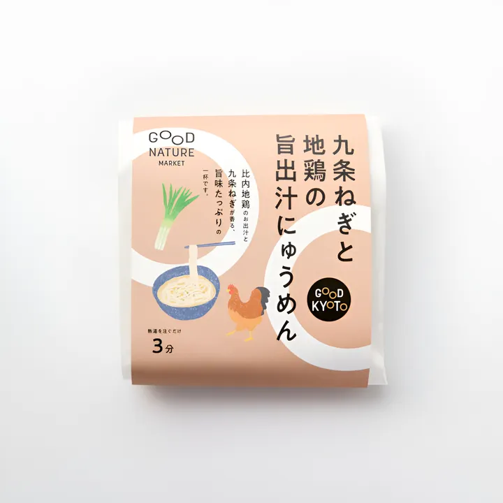 お湯を注ぐだけで出来上がる、ほっとするやさしい味わいのにゅうめんです。北海道産小麦100%のそうめんを特殊製法で乾燥。ノンフライの即席麺でありながら、つるっとした本格的な手延べの喉越しに仕上げました。日本三大美味鶏のひとつにあげられる比内地鶏のスープと食べごたえのある九条ねぎの味わいをお楽しみください。 〇四百年伝承の技、瀬戸内の小豆島手延そうめん。 旨出汁にゅうめんは、讃岐うどんの祖先とも言われる「小豆島そうめん」を使用。瀬戸内・小豆島に手延そうめん作りの技が伝えられたのは約400年前と言われ、小豆島の職人は素材と製法を守り続けてきました。手延そうめん作りに欠かせない寒風の吹き寄せる瀬戸内の自然に抱かれた小豆島で、ていねいに作られたそうめんです。 〇北海道産小麦100%を使用。職人仕立てのもちもち麺。 麺は北海道産小麦100%の旨味の多い小麦を使用。小豆島そうめんは、そうめんの中でも弾力と歯応えがあるのが特徴と言われています。即席麺でありながら、職人の経験と勘を頼りに、つるっとした本格的な手延べの喉越しの麺に仕上げました。 〇コクのある比内地鶏のほっとする旨味たっぷりスープ。 日本三大美味鶏のひとつに挙げられる比内地鶏からとれるスープは、明治5年創業の味噌醤油の蔵元、浅利佐助商店が比内地鶏の鶏がらを使用して自社で出汁をとり、コク深いスープに仕上げました。 〇風味の良い京野菜、九条ねぎを薬味に使用。 味・品質にこだわった九条ねぎをフリーズドライではなく、低温熱風という製法でじっくりと時間をかけて風味の良さを残しました。葉肉が厚く食べごたえのある九条ねぎだからこそ、乾燥タイプでもスープに入れると水分を含み、ボリューム感があります。 〇お湯を注ぐだけ。軽食やお夜食にも便利。 旨出汁にゅうめんは、お湯を注ぐだけで手軽においしくお召し上がりいただけます。 やさしい味わいで、軽いお食事や汁物の代わり、お夜食にもぴったり。お子さまから年配の方まで、幅広く召し上がっていただけます。 常温保存のため、保存食やギフトとしても喜ばれる商品です。 〇京都のGOODな食材、食の知恵、作り手たち。「GOOD KYOTO」 京都で大切に育まれた、安心・安全な自然食材。古来より京都に根付く、自然を敬う豊かな食の知恵。昔ながらの製法を大切にする、素晴らしいつくり手。美味しいだけじゃない、心にも体にもGOODな京都の食を、リスペクトを込めてお届けします。 〇お召し上がり方 1.麺とかやくを器に移し、沸騰させたお湯または再沸騰させたポットのお湯を麺が完全に浸るまで注いでください。(約400ml程度) 2.ラップや鍋のふたなどを器に被せてください。 3.3分後、ふたを開け、スープを入れてよく混ぜてからお召し上がりください。 ※熱湯を扱いますので、やけどには充分気を付けてください。