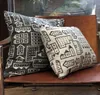 ジャガード織 クッションカバー ”Town" タウン 大サイズ 白地に茶色柄