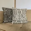 ジャガード織 クッションカバー ”Town" タウン 大サイズ 茶色地に白柄