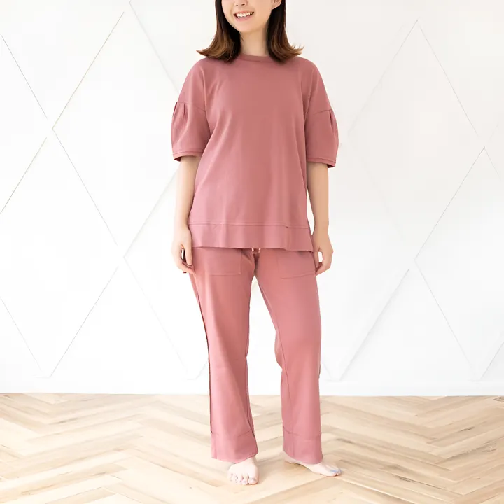 ピマコットン リラクシングルームウェアセット コーラルピンク