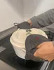 手作りフェルトの丸い形の鍋つかみ。 耐熱性の高いウール100%の丈夫な鍋つかみです。 オーブンやアウトドア用にも使えます。 掛紐には、本革を使っています。アクセントにプラスを入れました。 フェルトの丸いかわいらしい感じの鍋つかみがキッチンにあると心が和みます。 広げると鍋敷きにも使えます。 北欧風のシンプルなデザインです。 手作りの為、多少形に違いがあります。ご了承ください。
