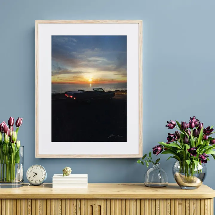 【現代アートポスター】ロサンゼルス LA サンセット 海 クラシックカー 風景 写真 PHOTO A3(M) フレームセット:無垢 41.0×52.5cm