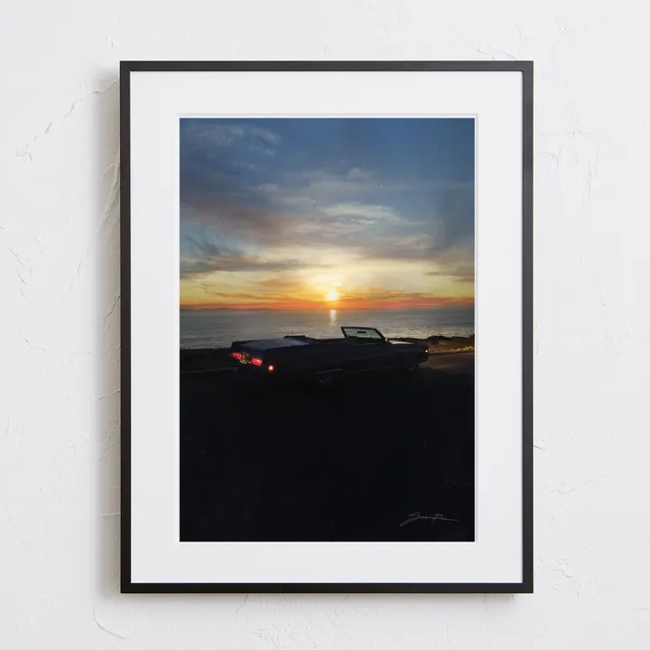 【現代アートポスター】ロサンゼルス LA サンセット 海 クラシックカー 風景 写真 PHOTO A4(S) フレームセット:黒 29.4×38.4cm