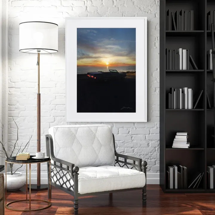 【現代アートポスター】ロサンゼルス LA サンセット 海 クラシックカー 風景 写真 PHOTO A2(L) フレームセット:白 55.1×73.3cm