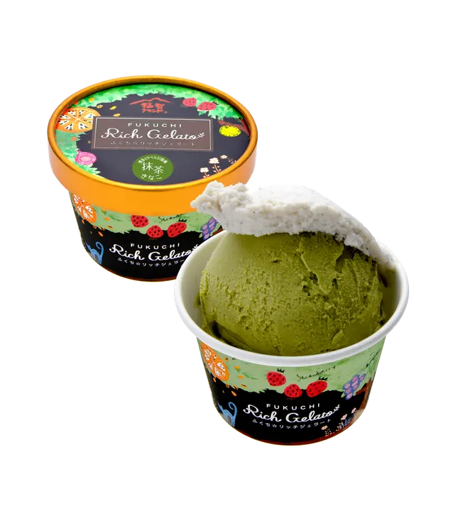 福岡県福智町のまちおこしブランドとして、町民の想いが詰まったジェラートです。カップのデザインが特徴的で消費者の目を引きます。
