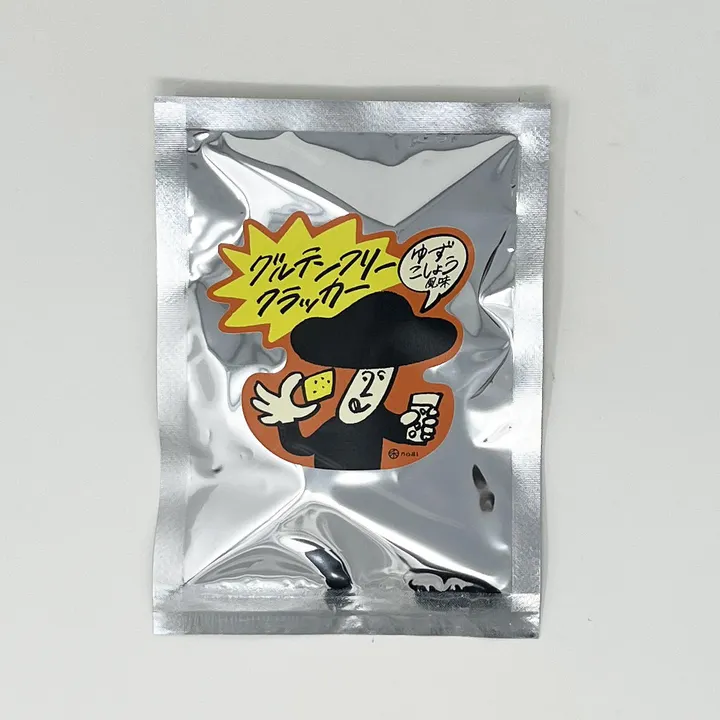 おこめの美味しさをいかした軽い食感のお米のクラッカーです。干ししいたけのうま味との柚子胡椒のピリッとしたアクセントがクセになるグルテンフリースナックです。