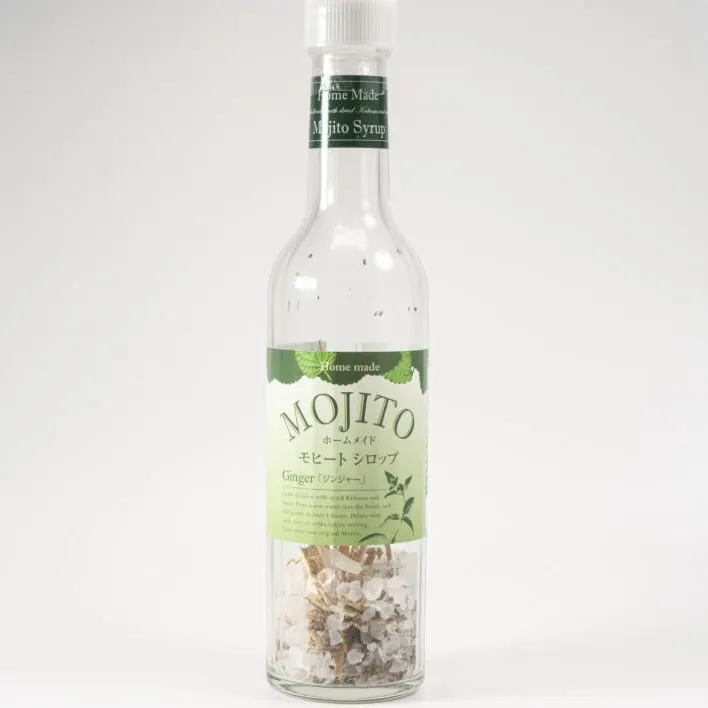 ミント香るホームメイドモヒートシロップ。夏は冷やして炭酸で、冬はお湯で薄めてどうぞ。ラム酒やウォッカなどお好みのアルコールを足すのもオススメです。 瓶の中にドライミントと生姜、ハーブ等が入っています。お湯をいれて数時間置くと爽やかなミントの香りにピリリと生姜のきいたシロップが出来上がります。冷やして炭酸水で割って飲んだり ジンやウォッカなどのアルコールで割っても美味しいです。