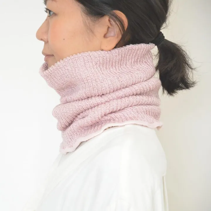 絹と炭のネックウォーマー|シルク|温活|二重編み|くびの冷え|日本製 【マーブルピンク】