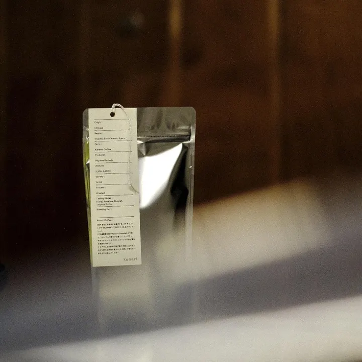 隣(tonari)が1周年の節目のために取り扱うコーヒーです。 1周年という節目を越え、今日からは2年目のはじまり。 はじまりといえば、コーヒーの発祥地はエチオピア。 エチオピアンコーヒー好きならご存じの方も多いかもしれない、Nigusse Gemeda(ニグセ・ゲメダ)氏が手掛ける「KARAMO COFFEE」。 高品質なコーヒーを次々と送り出している「KARAMO COFFEE」から、今回初めてのウォッシュトプロセス。 エチオピアらしい華やかで花やか。 ウォッシュトらしいクリアな飲み心地ながら、芳醇なフルーツの印象と香りの密度を感じる、「本当にウォッシュト?」と思うほど。エネルギッシュでいて上品なコーヒーです。 原点に立ち返りながらも、新しい挑戦へ。 1周年という機会に姿勢を正す、そんな意味でも想いが重なる一杯。 隣(tonari)に関わる全ての方に感謝を込めて。 - 生産国: Ethiopia(エチオピア) 生産地:Sidama, Bura Karamo, Agena(シダマ州 ブラ カラモ アゲナ村) 農園:KARAMO Coffee(カラモコーヒー) 生産者:Nigusse Gemeda(二グセ ゲメダ) 標高:2,200‑2,400m 品種:74158 精製方法:Washed(ウォッシュト) テイスティングコメント: Floral(フローラル), Rose tea(ローズティー), Muscat(マスカット), Tropical fruits(トロピカルフルーツ)