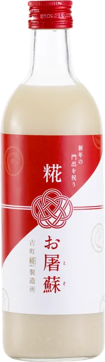 米と米糀で作られる糀甘酒に、屠蘇散を加えてお正月の縁起物を再現しました。 糀の力でお米の甘みを引き出し、お米由来の豊かな甘みを感じることができます。 ノンアルコールの商品ですので、小さなお子様から年配の方まで幅広い方に飲用していただけます。 屠蘇とは、もともと数種の薬草を日本酒やみりんに漬け込んだ薬草酒のひとつです。 元旦の朝、東の方を向き年少の者から盃をまわし「一人これ飲めば一家病なし、一家これ飲めば一里疾なし」と唱えながら頂き、その年一年の健康と幸福を願う風習があります。 古町糀製造所では、この「お屠蘇」を糀甘酒で表現しました。 シナモンや山椒果皮など数種の生薬を合わせた「屠蘇散」を漬け込んで仕込み、チャイのようなスパイシーな味わいです。 ノンアルコールなので、ご家族みなさまでお楽しみいただけます。大切な方と迎える新しい年は、ぜひ「糀・お屠蘇」で乾杯を。