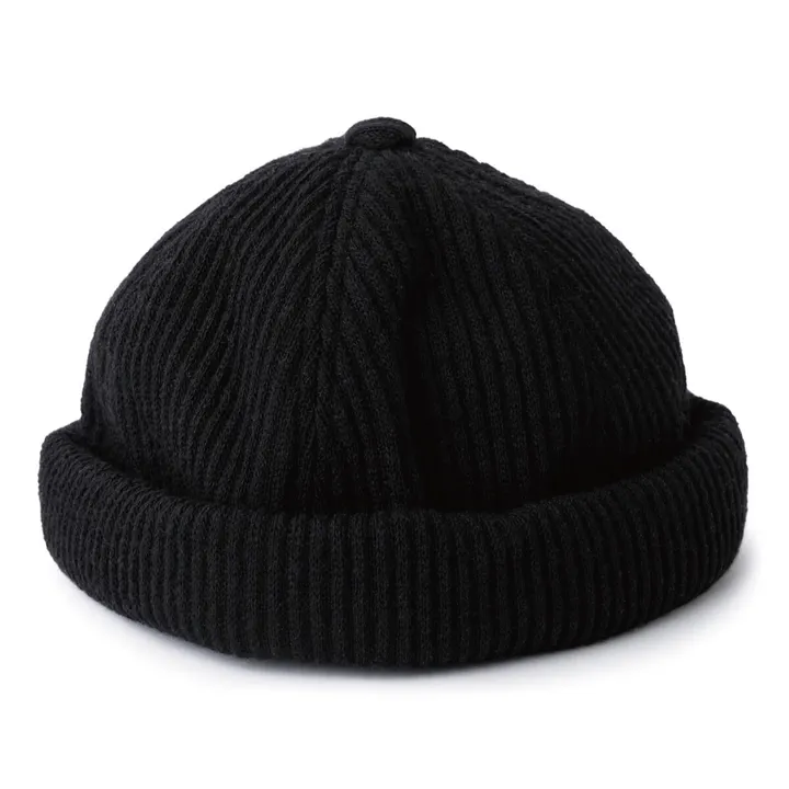 肌触りの良いニット素材のフィッシャーマンキャップ。太畝のコーデュロイのようなリブ編み。アジャスターは本革を使用。