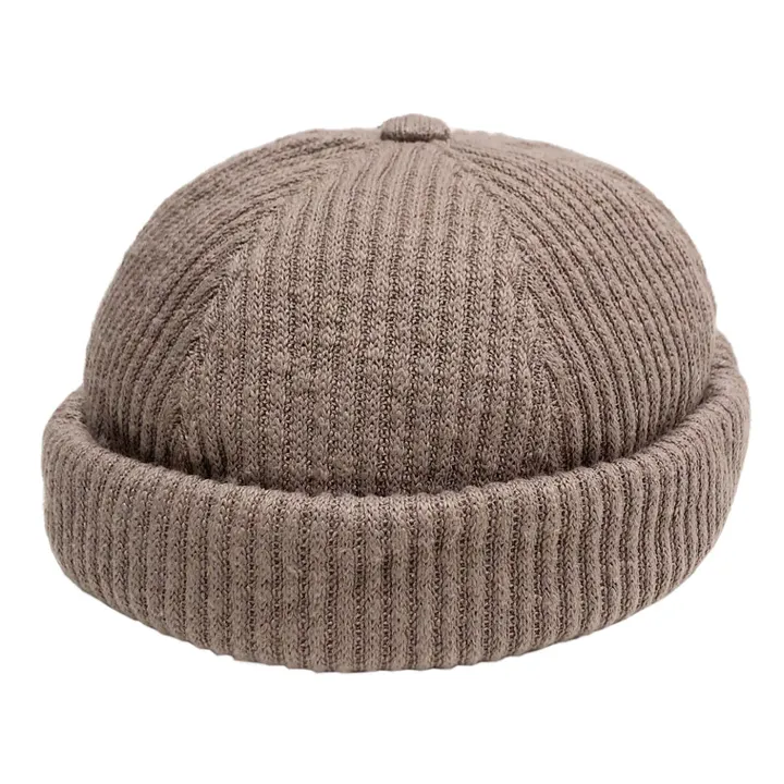肌触りの良いニット素材のフィッシャーマンキャップ。太畝のコーデュロイのようなリブ編み。アジャスターは本革を使用。