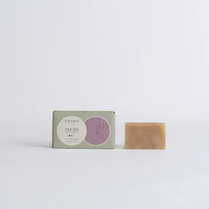 【黒みつとあずきのコールドプロセス石けん】 沖縄の定番おやつ「ぜんざい」をイメージし、久米島産の無農薬「黒みつ」と、あずきを配合した石けんです。黒みつは、保湿力が高く、乾燥を防ぎ、肌にうるおいを与えてくれます。また、メラニンの生成を抑え、シミやそばかすを防いでくれる効果も。あずきは、古く奈良時代からすぐれた洗顔料として利用されてきたそうで、毛穴のよごれや余分な角質をやさしく落とし、肌をなめらかにしっとりとさせてくれます。 FROMOの石けんは、材料に過度な熱を加えずに、ゆっくりとていねいに乾燥・熟成させる、コールドプロセス製法で作っています。マッサージにも使えるグレードの植物オイルやハーブ、美容成分などをふんだんに使用し、衛生面を考え、とけ崩れしにくいように配合を調整。潤いと香りに満たされ、最後まできれいに使えるのが特徴です。 精油 (⾹り成分) パチュリ、オレンジ、クローブ ●使い方 ・ぬらした手に石けんをとり、ぬるま湯を加え、転がしながら少しずつ泡立てます。 (泡立てネットを使うと、よりもっちりした泡に) ・しっかりと泡立ったら、ゆっくり深呼吸して香りを感じ、肌をやさしく包み込むように洗います。 ・顔の中心から外側に向かって、円を描きながら、肌をこすらないようにやさしく。 ・洗ったあとは、人肌ほどのぬるま湯で、しっかりとすすぎます。 ● おすすめの使用シーン  朝晩の洗顔 ● こんな方におすすめ  乾燥が気になる。  お肌のうるおいを保ちたい。