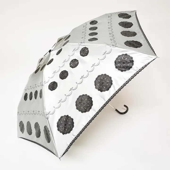 婦人折りたたみ傘 サテンレースモチーフ柄プリント 雨晴兼用傘 1382 ブルー